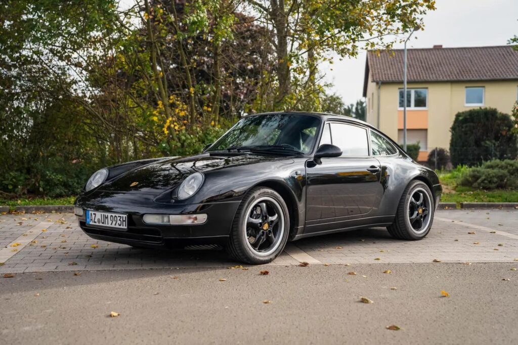 This Porsche 911 (993) Carrera Coupé presents in deep black with a matching black leather interior. It features a desirable color combination and remains in well-preserved, original condition. The paintwork is ceramic-sealed and shows an excellent overall finish.