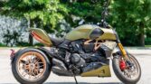 This limited-edition Diavel features a liquid-cooled 1,262cc Testastretta L-Twin producing thrilling power, paired with a six-speed transmission and Ducati Quick Shift (DQS) for seamless performance. Its carbon-fiber bodywork, Gia Green paint with black and gold graphics, and Electrum Gold-finished forged alloy wheels give the bike a dramatic, unmistakable presence.