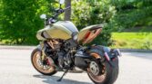 Premium components include adjustable Ă–hlins suspension, Brembo triple disc brakes with Bosch ABS, LED lighting, heated grips, and a full-color TFT dashboard offering selectable riding modes and advanced control systems such as traction control, wheelie control, launch control, and cruise control. The Alcantara solo seat and carbon-fiber details add a luxurious finishing touch.